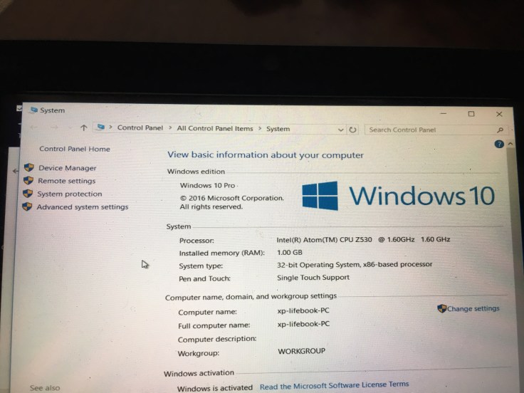 Installed with Windows 10, however there’s no display driver therefore screen looked awful without auto rotation capability. It is very slow too, probably because lack of display driver.